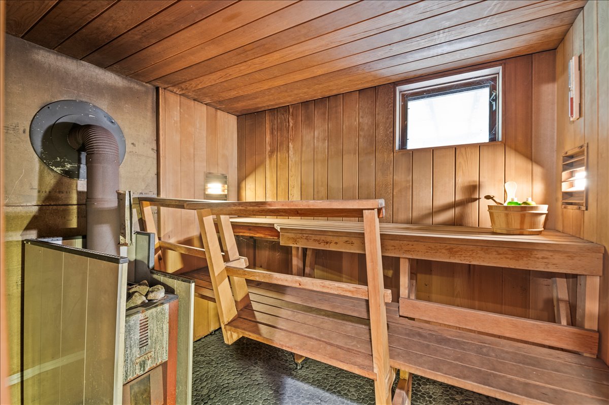 • Basement wood-burning sauna and gym equipment