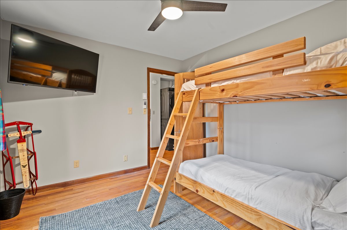 • Bedroom 3: Bunk beds (two twin mattresses) + Smart TV